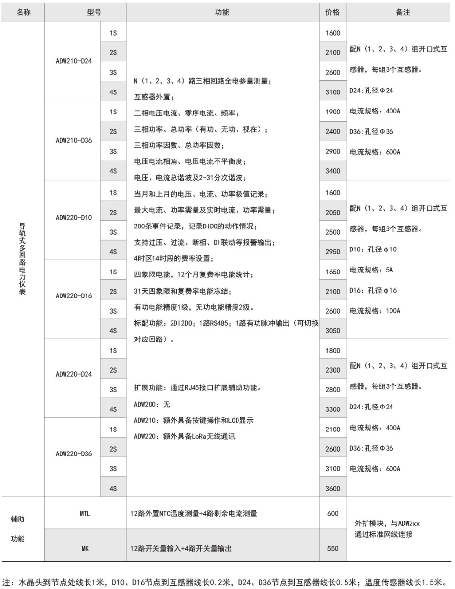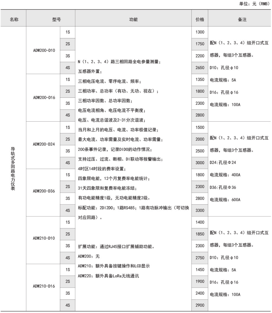 ADW2xx系列導(dǎo)軌式多回路電力儀表主要用于低壓三相回路全電參量測量,同時(shí)可選擇四個(gè)回路的電流輸入。可直接或間接測量電壓、電流、功率、功率因數(shù)、相角、不平衡度、諧波等參數(shù)。 還可通過其RJ45接口擴(kuò)展輔助功能,實(shí)現(xiàn)DI、DO、測溫、剩余電流測量,以及2G、4G、LoRa、LoRaWan、NB-Lot無線通信功能。