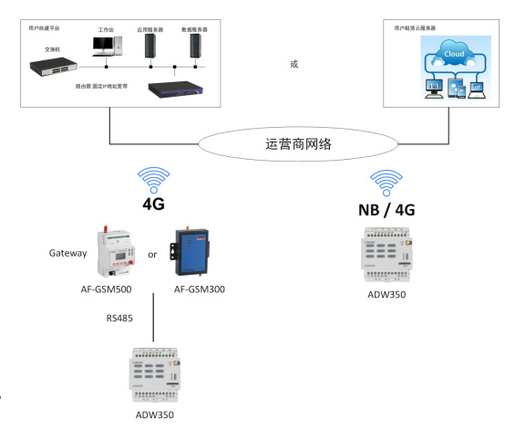 ADW350無線計量儀表主要用于計量低壓網(wǎng)絡(luò)的三相有功電能,具有體積小、精度高、功能豐富等優(yōu)點,并且可選通訊方式多,可支持RS485通訊和Lora、2G、NB、4G等無線通訊方式,增加了外置互感器的電流采樣模式,從而方便用戶在不同場合進行 安裝使用??伸`活安裝于配電箱內(nèi),實現(xiàn)對不同區(qū)域分布式小基站進行數(shù)據(jù)監(jiān)測與負(fù)載控制。