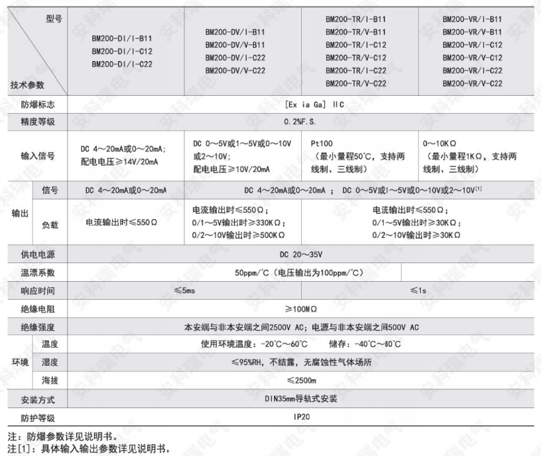 BM200系列隔離式安全柵采用了限壓、限流、隔離等措施,不僅能防止危險能量從本安端子進入危險現(xiàn)場,提高系統(tǒng)的本安防爆性能,而且增加了系統(tǒng)的抗干擾能力,提高了系統(tǒng)運行的可靠性。