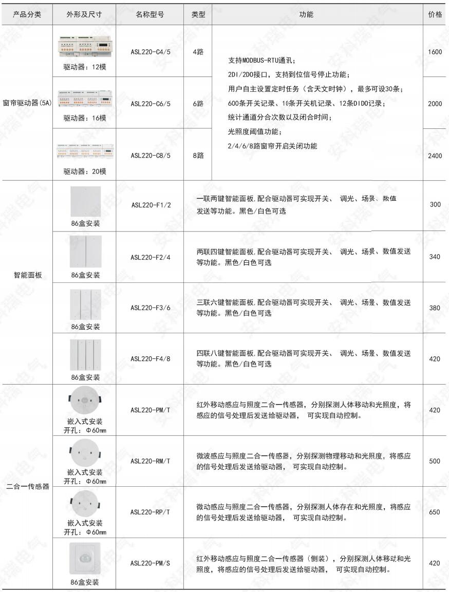 產(chǎn)品簡介:智能照明控制系統(tǒng)從功能上可以分為驅(qū)動器、傳感器和系統(tǒng)元件。各個元件通過專用Acrel-BUS總線以樹形、星形或線形的拓撲結(jié)構(gòu)靈活組網(wǎng)。驅(qū)動器負責接收和處理傳感器傳送的信號,并執(zhí)行相應的操作,如開/ 關(guān)燈、調(diào)節(jié)燈的亮度。傳感器負責根據(jù)現(xiàn)場手動操作,或探測光線、溫度等的變化,向驅(qū)動器發(fā)出相應的控制信號。系統(tǒng)元件主要負責搭建系統(tǒng)平臺,如系統(tǒng)電源、線路耦合器、傳輸介質(zhì)等。