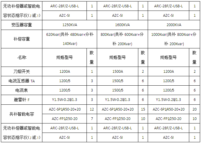 1、變壓器容量為400/800/1000/1250/1600/2000KVA的三相補(bǔ)償應(yīng)用方案。