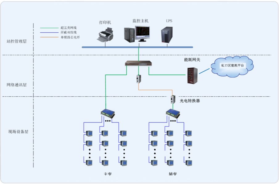 根據(jù)上海虹口區(qū)的相關(guān)能耗導(dǎo)則,現(xiàn)針對虹口區(qū)的兩個(gè)變電所實(shí)現(xiàn)能耗的實(shí)時(shí)監(jiān)控,并按照區(qū)域能耗平臺的數(shù)據(jù)要求,將虹口足球場的用能分為空調(diào)用電、照明插座用電、動(dòng)力用電以及特殊用電,將以上數(shù)據(jù)不間斷上傳至虹口區(qū)能耗平臺。