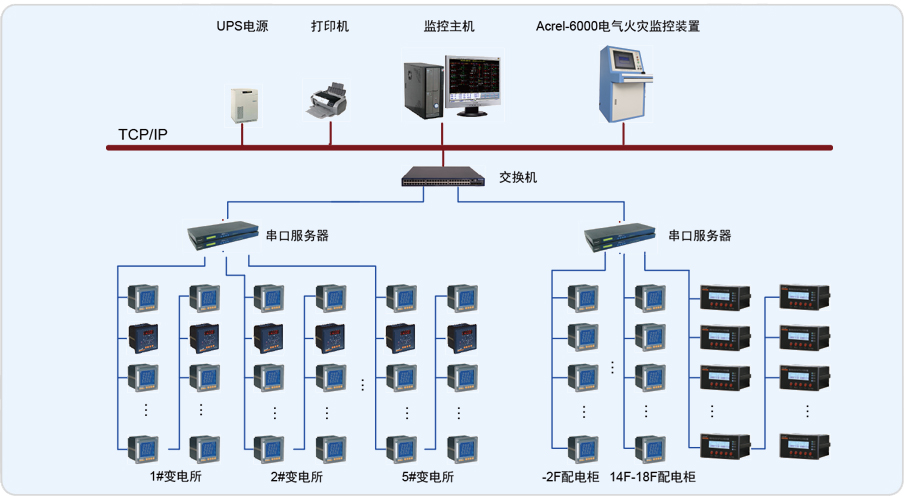 甘肅省天水市第一人民醫(yī)院,始建于1950年,占地面積98畝,是天水市的一所三級甲等醫(yī)院。 配電分為配電室和樓層兩塊,系統(tǒng)針對這兩塊的配電系統(tǒng)進行用電監(jiān)控;監(jiān)控范圍為地下變電所的T1、T2、T3、T4變壓器的低壓進線柜、聯(lián)絡柜、饋線柜儀表和每個樓層中的配電柜中的儀表進行監(jiān)控。