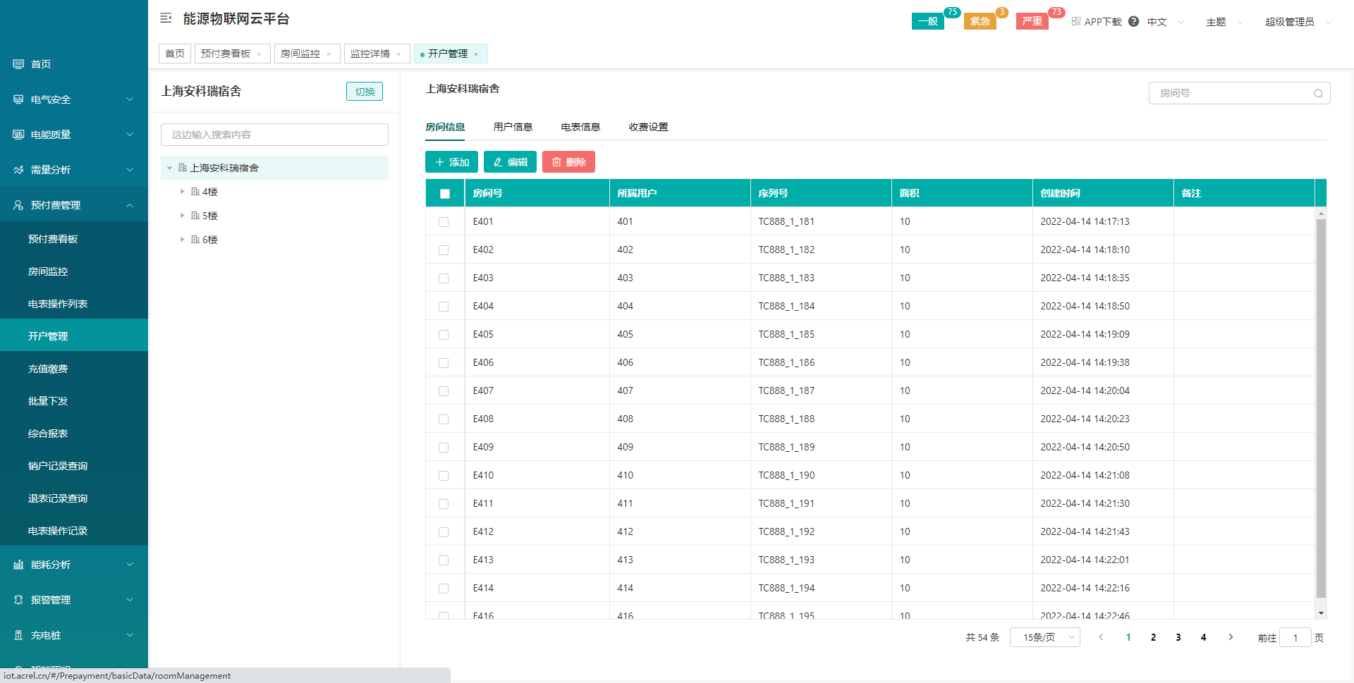 系統(tǒng)針對商鋪開戶不僅支持一戶一表,也支持一戶掛多表的需要;同時解決了項目改造后新老表切換時,老表金額轉(zhuǎn)入的問題;支持峰谷電價;可對單表設(shè)置功率過載的閾值,也支持設(shè)置單表金額報警的兩級閾值。