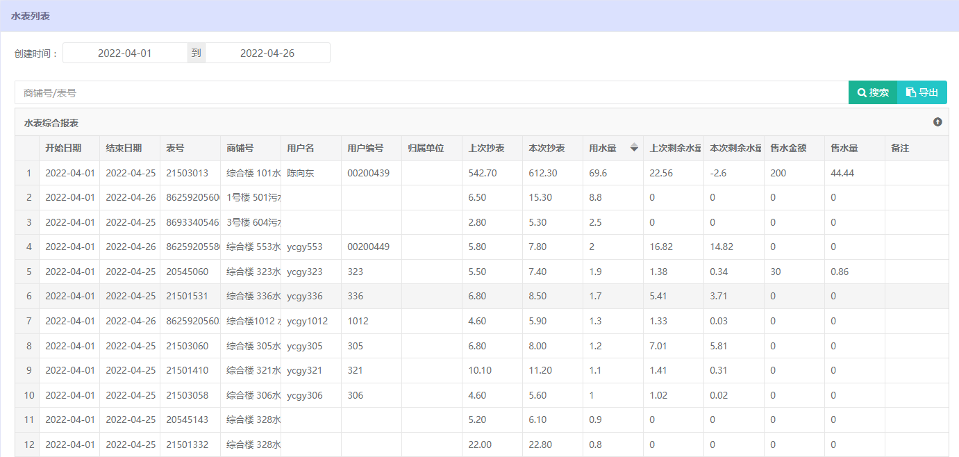 水表也提供多種報表供用戶查詢統(tǒng)計,包括銷售報表,綜合用水報表、水表失聯(lián)報表、水表告警記錄歷史報表等。