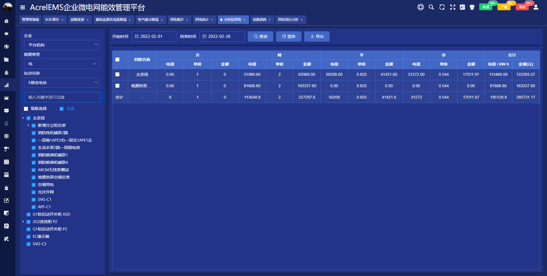 電力監(jiān)控系統(tǒng)以豐富的報(bào)表體支撐量體系的完整性。系統(tǒng)具備定時(shí)抄表匯總統(tǒng)計(jì)功能,用戶可以自由查詢自系統(tǒng)正常運(yùn)行以來(lái)任意時(shí)間段內(nèi)各配電節(jié)點(diǎn)的用電情況,即該節(jié)點(diǎn)進(jìn)線用電量與各分支回路消耗電量的統(tǒng)計(jì)分析報(bào)表。