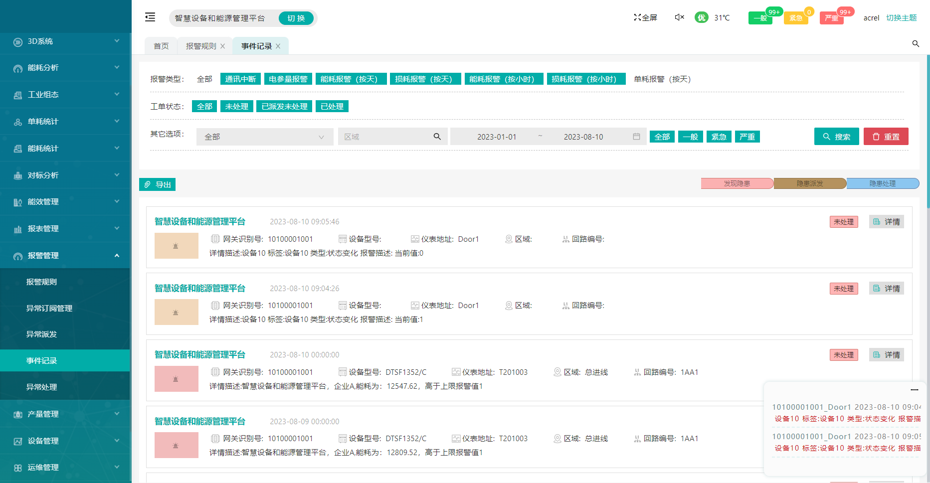 電力監(jiān)控系統(tǒng)能夠?qū)b信變位,保護動作、事故跳閘,以及電壓、電流、功率、功率因數(shù)越限等事件記錄進行存儲和管理,方便用戶對系統(tǒng)事件和報警進行歷史追溯,查詢統(tǒng)計、事故分析。