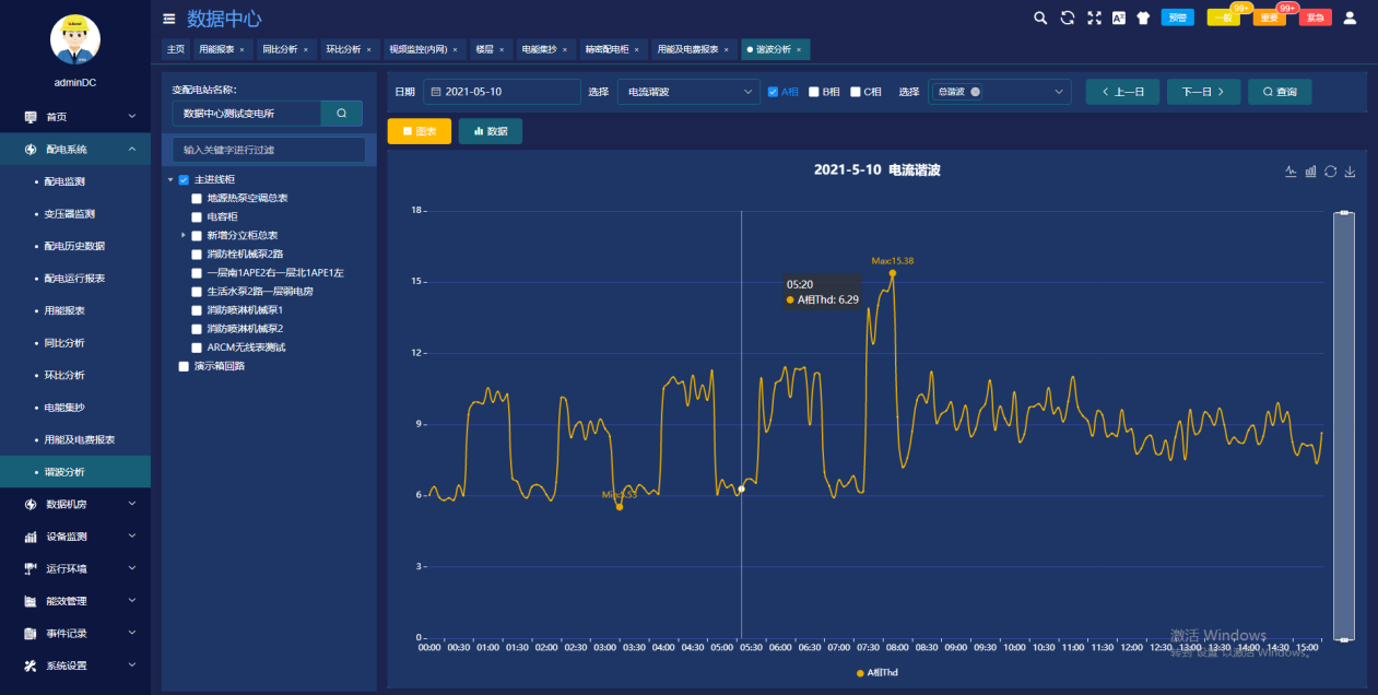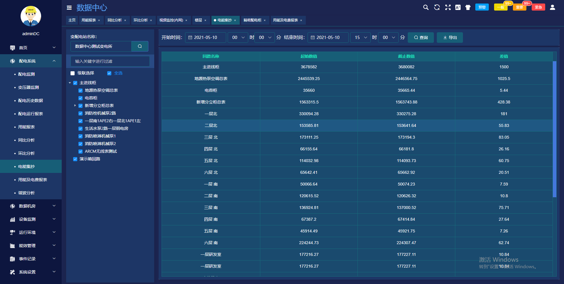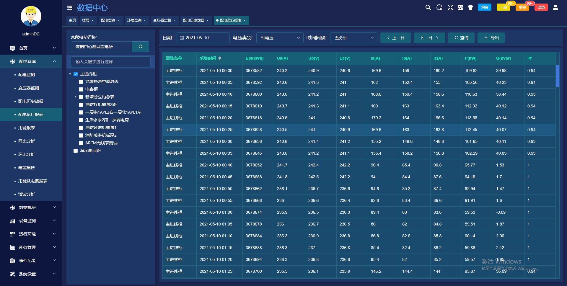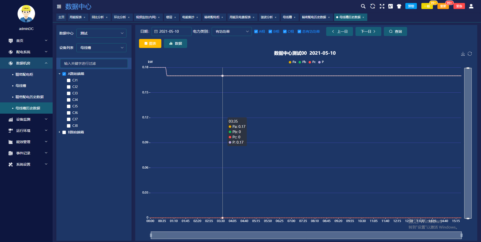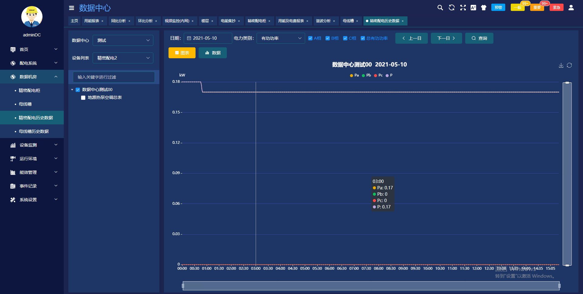 本頁(yè)面顯示精密配電設(shè)備下所有分支回路的電力參數(shù),支持歷史數(shù)據(jù)的查詢。如