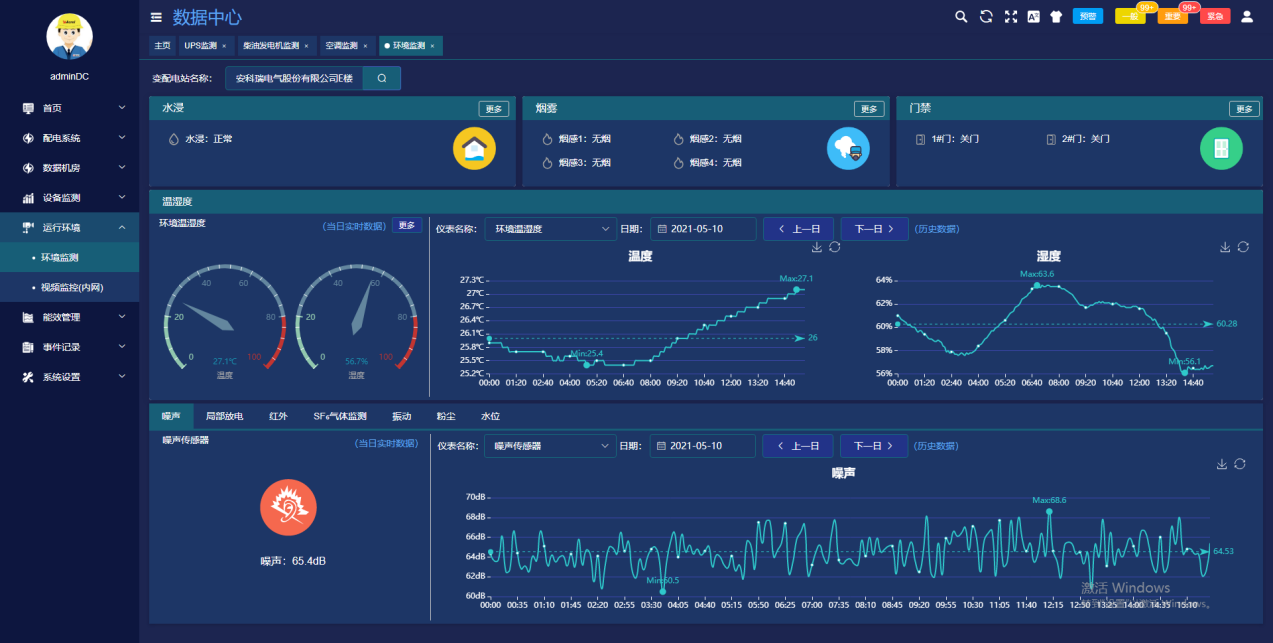 環(huán)境監(jiān)測(cè)主要包括現(xiàn)場(chǎng)溫度、濕度、門禁狀態(tài)、水浸狀態(tài)、噪聲等設(shè)備。