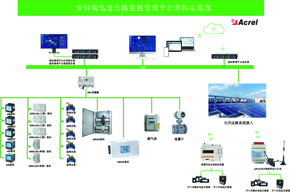 建立高效的能耗監(jiān)測管理系統(tǒng),對高速區(qū)域內各類耗能設備能耗數據進行實時測量,對采集數據進行統(tǒng)計和分析。能夠合理的確定各區(qū)域建筑能耗經濟指標及績效考核指標,發(fā)現能源使用規(guī)律和能源浪費情況,提高人員主動節(jié)能的意識。