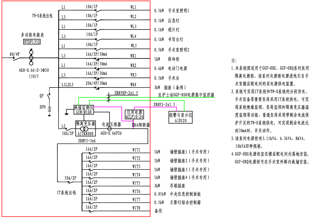 GGF-OXG、GGF-OXQ醫(yī)用隔離電源柜系統(tǒng)接線圖