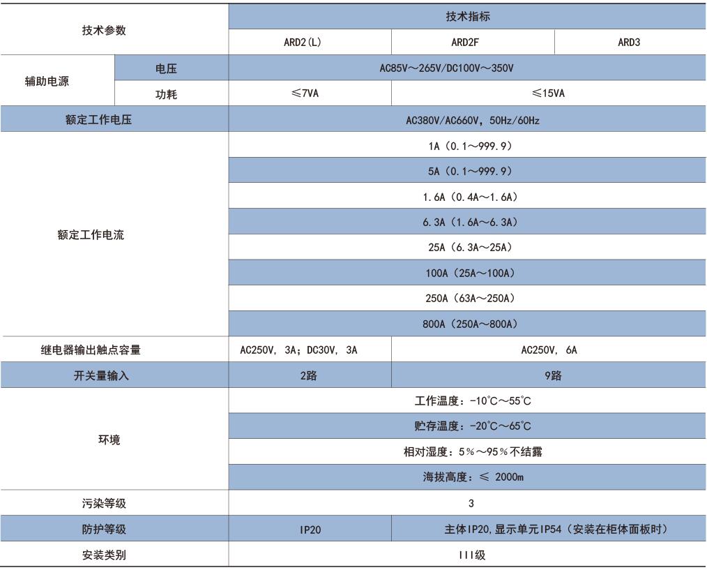 ARD2(L)、ARD2F、ARD3主要技術(shù)指標(biāo)
