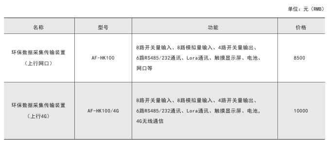 AF-HK100 污染源在線自動(dòng)監(jiān)控(監(jiān)測(cè))數(shù)據(jù)采集傳輸儀是應(yīng)環(huán)保領(lǐng)域各級(jí)國(guó)控、省控 及市控污染源環(huán)境在線監(jiān)控(監(jiān)測(cè))系統(tǒng)的需求而開發(fā)研制的產(chǎn)品,通過模擬通道、開關(guān)通 道、數(shù)字通道(RS232/485/LoRa)與前端各類監(jiān)測(cè)儀器/儀表實(shí)現(xiàn)無縫連接,進(jìn)行本地?cái)?shù)據(jù) 采集、存儲(chǔ)、處理與展示,并通過 4G/有線等網(wǎng)絡(luò)將數(shù)據(jù)遠(yuǎn)傳至監(jiān)控中心。
