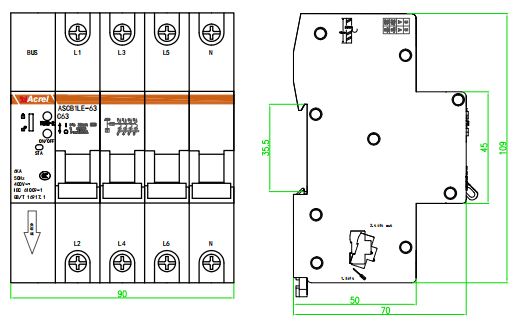 技術(shù)要求:監(jiān)測電路、短路保護(hù),AC 63A以下負(fù)載