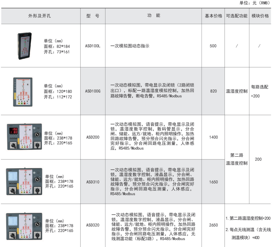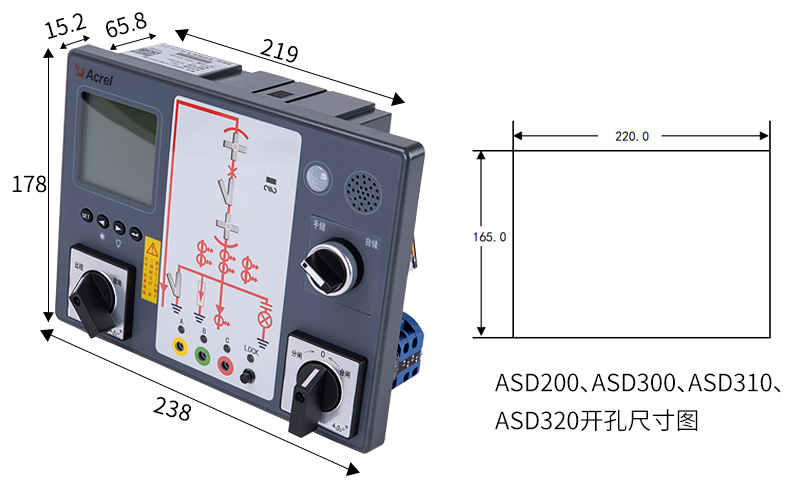 ASD系列開(kāi)關(guān)柜綜合測(cè)控裝置具有一次回路模擬圖及開(kāi)關(guān)狀態(tài)指示、高壓帶電顯示、自動(dòng)溫濕度控制、人體感應(yīng)自動(dòng)照明、語(yǔ)音提示、電參數(shù)測(cè)量及RS485通訊接口等功能,集操作、顯示于一體,直觀地體現(xiàn)柜內(nèi)元件的工作狀態(tài)及工作環(huán)境。