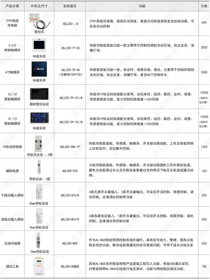產(chǎn)品簡介:智能照明控制系統(tǒng)從功能上可以分為驅(qū)動器、傳感器和系統(tǒng)元件。各個元件通過專用Acrel-BUS總線以樹形、星形或線形的拓撲結(jié)構(gòu)靈活組網(wǎng)。驅(qū)動器負責接收和處理傳感器傳送的信號,并執(zhí)行相應的操作,如開/ 關(guān)燈、調(diào)節(jié)燈的亮度。傳感器負責根據(jù)現(xiàn)場手動操作,或探測光線、溫度等的變化,向驅(qū)動器發(fā)出相應的控制信號。系統(tǒng)元件主要負責搭建系統(tǒng)平臺,如系統(tǒng)電源、線路耦合器、傳輸介質(zhì)等。