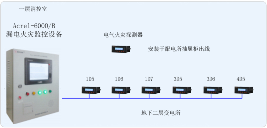 交通飯店有一個變電所,位于地下二層。變電所負(fù)責(zé)負(fù)一層超市以及地上樓層部分的用電。現(xiàn)為本項目設(shè)計一套漏電火災(zāi)系統(tǒng),由此來實(shí)時監(jiān)測變電所內(nèi)重要回路的漏電流,以確保變電所配電系統(tǒng)的電氣安全。