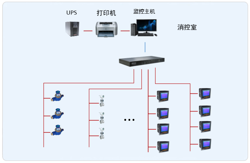 系統(tǒng)采用Acrel-5000型能耗監(jiān)控系統(tǒng),整個(gè)系統(tǒng)采用網(wǎng)絡(luò)分布式結(jié)構(gòu),監(jiān)控主機(jī)位于消防監(jiān)控室中,所有配電回路均配備安科瑞電力儀表PZ系列,以及一些水表。該項(xiàng)目實(shí)現(xiàn)了銀川建發(fā)大閱城?凱悅酒店能耗系統(tǒng)的智能管理,所有監(jiān)控設(shè)備均通過屏蔽雙絞線至后臺(tái)的通訊管理機(jī),從而實(shí)現(xiàn)遠(yuǎn)程監(jiān)控。
