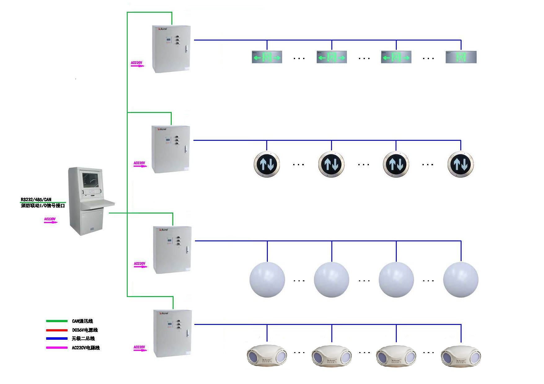 阿克蘇數據機房項目的消防應急照明和疏散指示系統(tǒng)是安科瑞研發(fā)的集監(jiān)視、報警、管理于一體的計算機測控系統(tǒng),該系統(tǒng)可以通過控制器接收火災報警系統(tǒng)的信號,當火災發(fā)生的時候,消防應急照明和疏散指示系統(tǒng)具有智能動態(tài)導光功能,系統(tǒng)根據火災報警聯動信號及災情現場的具體情況通過計算機選擇一條正確逃生路,再通過改變標志燈的箭頭方向為逃生人員提供更有效的疏散逃生路。當發(fā)生緊急斷電或電源供電不足時,應急照明集中電源能夠給燈具供電,保證整個系統(tǒng)的正常工作。該系統(tǒng)由控制器、集中電源、消防應急標志燈具和消防應急照明燈具等組成,系統(tǒng)結構合理、功能強大、可靠性高、維護方便。