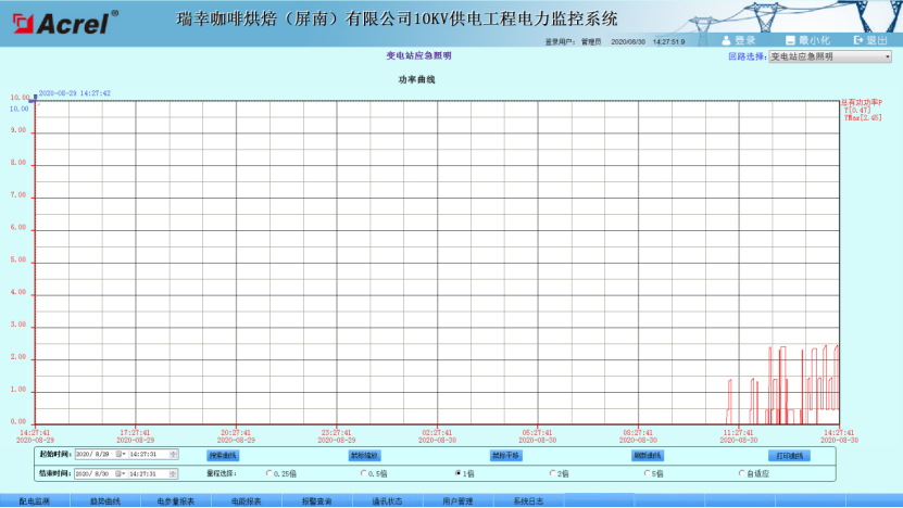 本項(xiàng)目含一個(gè)10KV變電所。安科瑞提供的Acrel-2000電力監(jiān)控系統(tǒng)包括:Acrel-2000軟件、5臺(tái)AM5SE系列微機(jī)保護(hù)、2臺(tái)直流屏、2臺(tái)溫控、128只智能電表AMC-72L/96L。