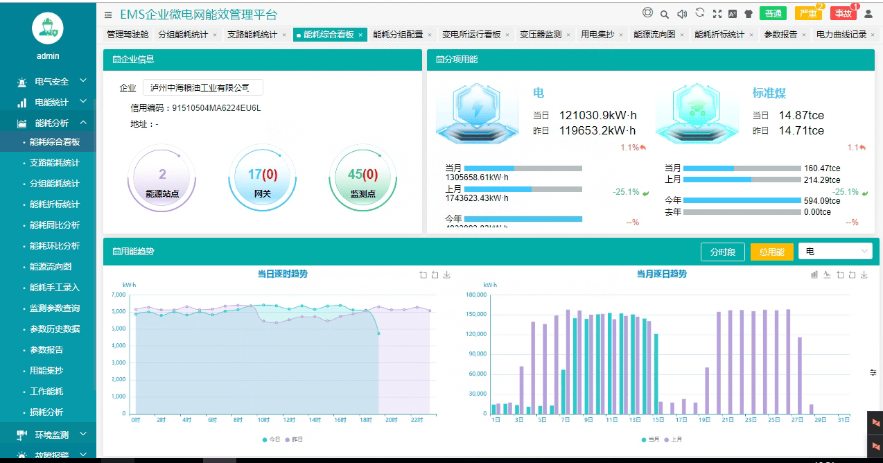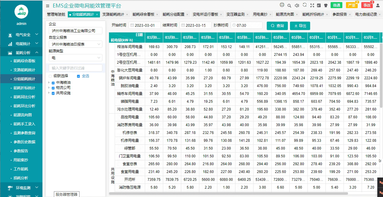 瀘州中海糧油能耗監(jiān)測(cè)系統(tǒng)改造項(xiàng)目EMS系統(tǒng)能夠分析建筑物內(nèi)部的用電、用水、用氣等數(shù)據(jù),幫助用戶(hù)發(fā)現(xiàn)并降低使用能源的浪費(fèi),進(jìn)而減少能源耗費(fèi),節(jié)約能耗成本。