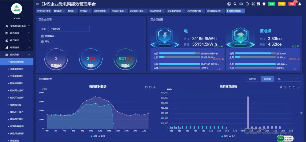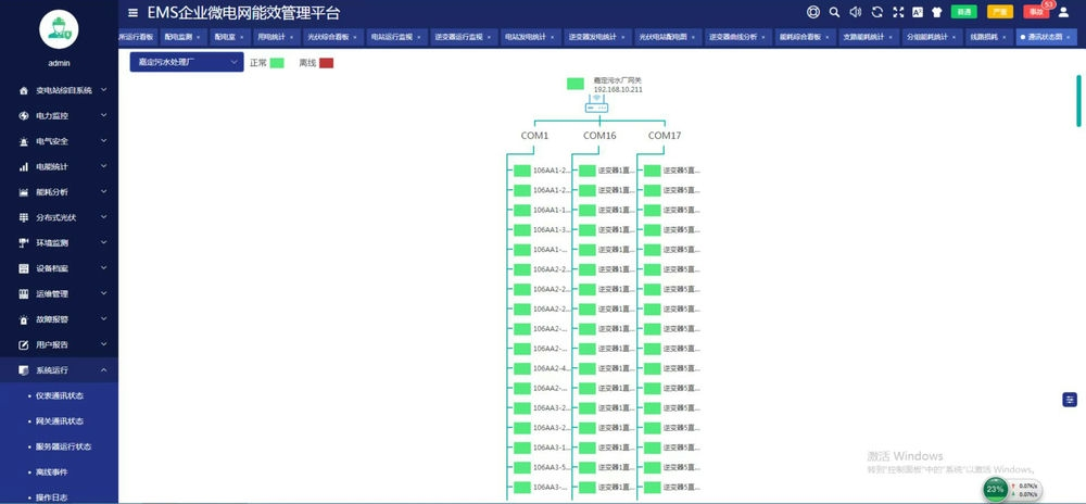 嘉定污水處理廠EMS電能管理系統(tǒng)項目分為三個低配間,兩個箱變和光伏設(shè)備,做到數(shù)據(jù)互通,電力數(shù)據(jù)實時顯示在電力一次圖上面。