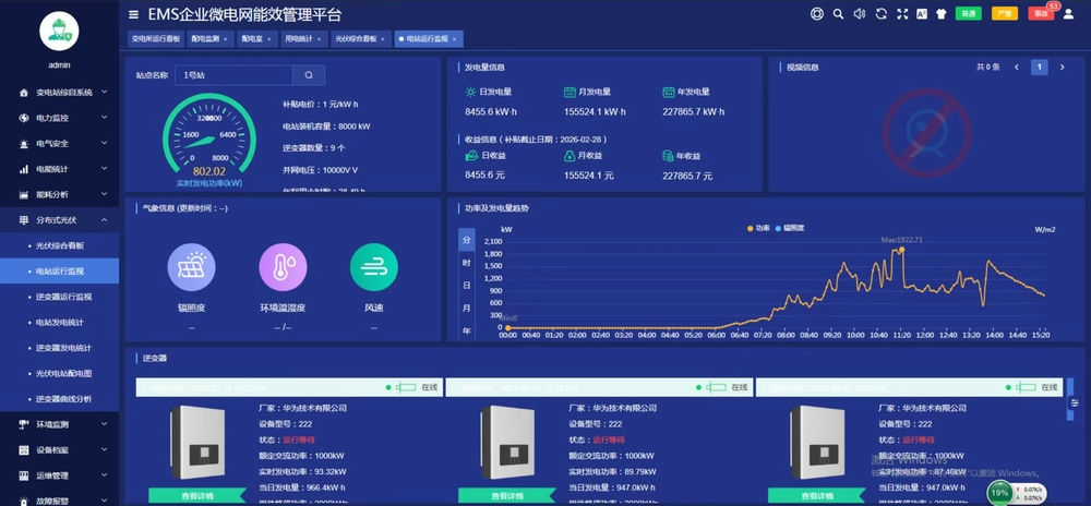 采用EMS能源管理解決方案,采集電表和逆變器的電壓電流功率電能等數(shù)據(jù),形成電能一次系統(tǒng)圖,實現(xiàn)用電的智能化管理。在每一個配電間還加裝有煙感、水浸、門磁等來監(jiān)測配電間整體環(huán)境狀態(tài)保證用電的安全性。在配電環(huán)節(jié)加裝有我們公司的電能質(zhì)量和濾波裝置更好的保證了用電的可靠性。