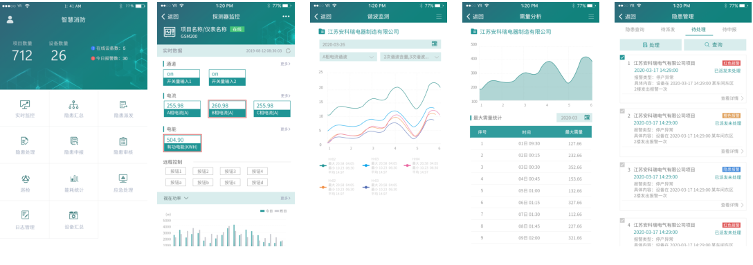 APP支持Android、iOS操作系統(tǒng),方便用戶查看電氣火災(zāi)、防排煙、消防水、消防設(shè)備電源、防火門、消防設(shè)備管理、視頻 監(jiān)控、火災(zāi)報警等子系統(tǒng)的實時監(jiān)控數(shù)據(jù)、報警信息、能耗統(tǒng)計等。