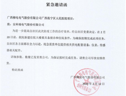 抗擊新冠肺炎,是一場沒有硝煙的戰(zhàn)爭,走在一線的醫(yī)護人員,承受著不為人知的壓力,與此同時,2月12日安科瑞接到廣西南寧醫(yī)院緊急邀請函,希望在2月20日前,完成供貨任務(wù)。