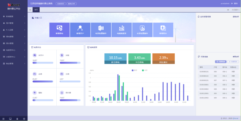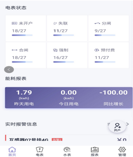 提供快捷的操作入口,包括:售電管理;新表開戶;電表批量操作;能耗統(tǒng)計(jì)報(bào)表;水表批量操作;售水管理等。