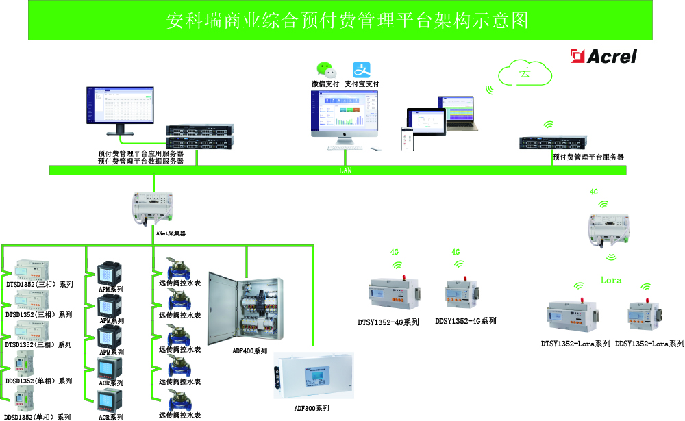 商業(yè)中心的能源消耗比重較大,商業(yè)用樓的節(jié)能問題正越來越受到人們的重視。傳統(tǒng)方式的抄表管理人工成本高、抄表數(shù)據(jù)易出錯(cuò)、還常常面臨追繳費(fèi)困難的問題。商業(yè)預(yù)付費(fèi)系統(tǒng)有效的解決了以上問題,還通過對能源數(shù)據(jù)的集中統(tǒng)一采集、對比、分析提高能源利用率,實(shí)現(xiàn)高效的節(jié)能,提高經(jīng)濟(jì)效益的同時(shí)提升辦公樓整體形象。該系統(tǒng)采用后臺自動和手動拉合閘操作,采用短信通知等人性化管理手段提前通知用戶繳費(fèi),支持微信支付寶等多種繳費(fèi)方式,使得預(yù)付費(fèi)管理靈活可靠。 同時(shí)后臺自動生成賬單,并進(jìn)行用電分析,大大提高了用能的智能化管理。本系統(tǒng)充分滿足了用戶的差異化用能環(huán)境和管理需求,是經(jīng)濟(jì)和實(shí)用的用能收費(fèi)管理系統(tǒng)。