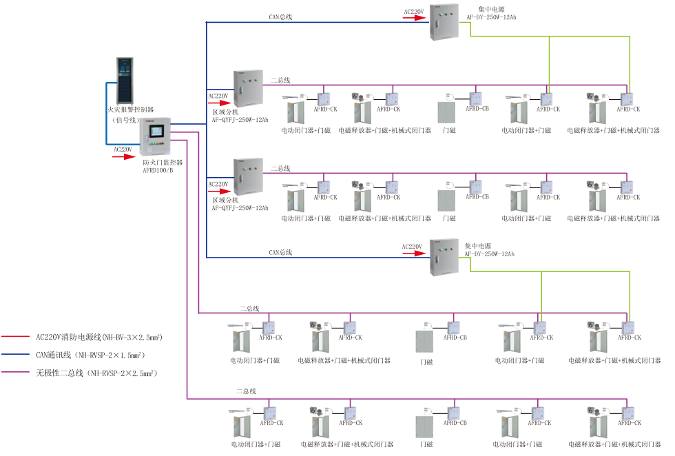 本系統(tǒng)可與火災(zāi)自動(dòng)報(bào)警系統(tǒng)聯(lián)動(dòng),當(dāng)發(fā)生火情時(shí),可接收火災(zāi)報(bào)警系統(tǒng)發(fā)出的信號(hào),并通過(guò)總線,將指令發(fā)布到每個(gè)終端,自動(dòng)關(guān)閉所有常開(kāi)防火門,隔離火源和煙霧。