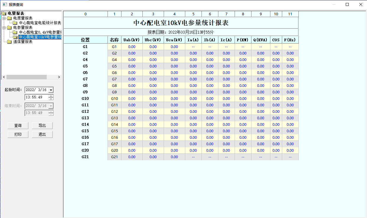 查詢各回路或設(shè)備指定時(shí)間的運(yùn)行參數(shù),報(bào)表中顯示電參量信息應(yīng)包括:各相電流、三相電壓、總功率因數(shù)、總有功功率、總無功功率、正向有功電能等.